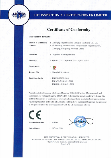 • 瓜果削皮機獲得CE認證