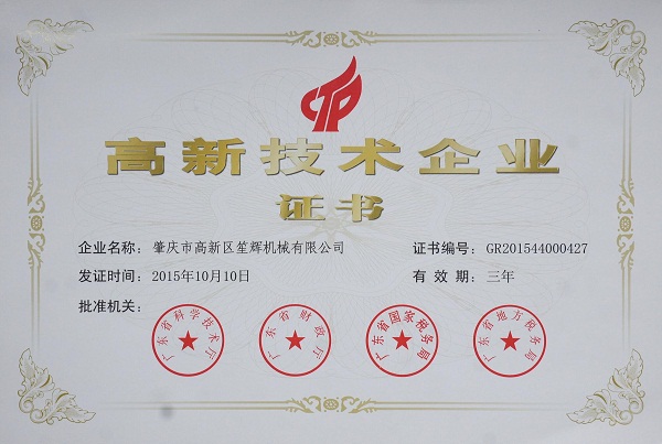 • 獲得高新技術企業證書
